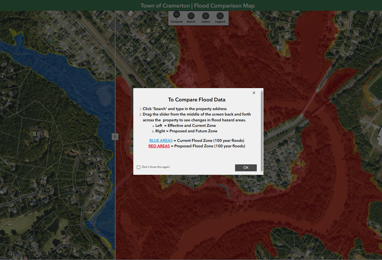 Click the image below to view the Interactive Flood Comparison Map. FEMA has updated the 100-year and 500-year flood areas. This interactive map allows you to search your property and see if your home falls within the new flood zone.
